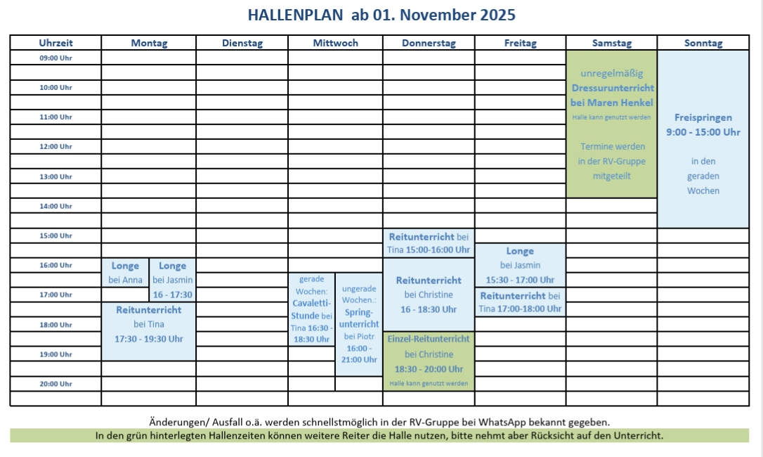 • Hallendienstplan